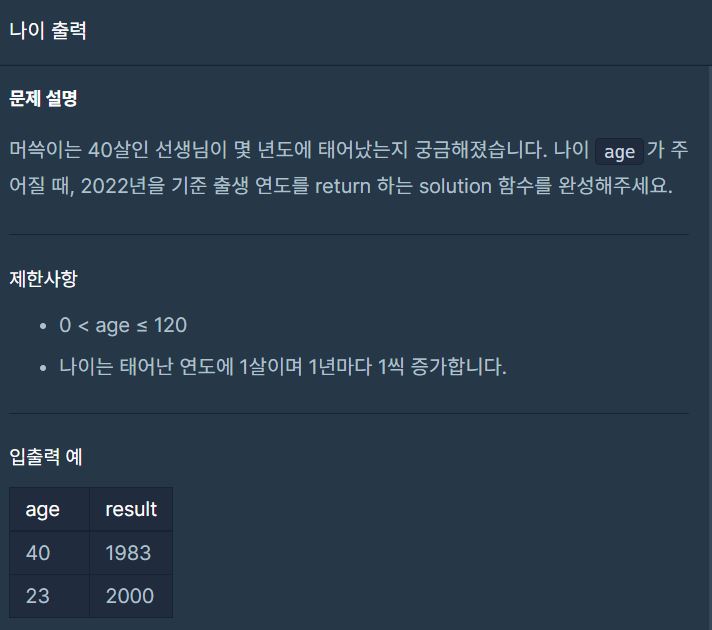 프로그래머스 C# 나이 출력(개쉬움, P, J)