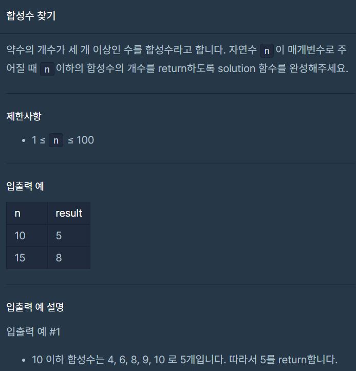 프로그래머스 C# 합성수 찾기(약수, P, J)