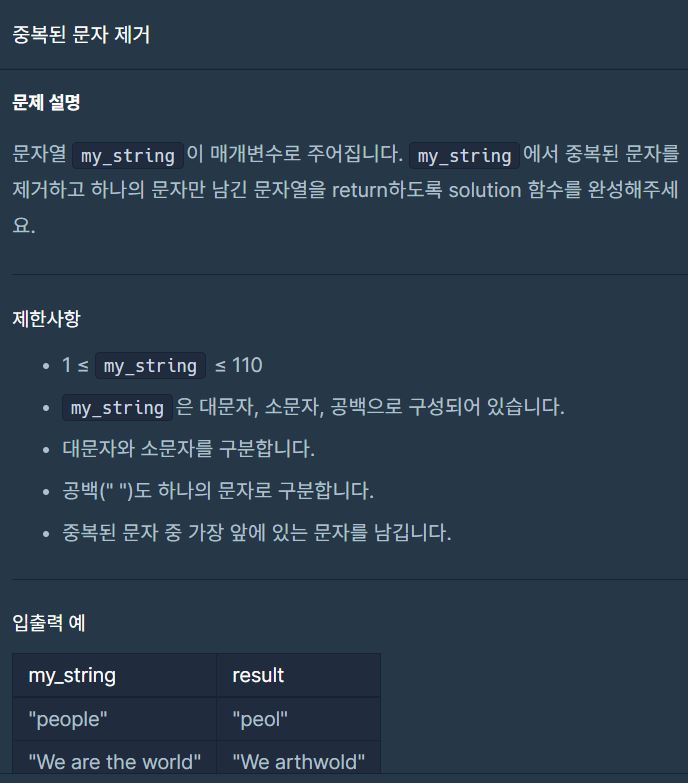 프로그래머스 C# 중복된 문자 제거(Distinct, Linq, string.Concat) 자바 파이썬
