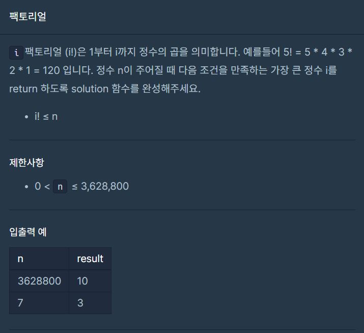프로그래머스 C# 팩토리얼(while, for, P, J)