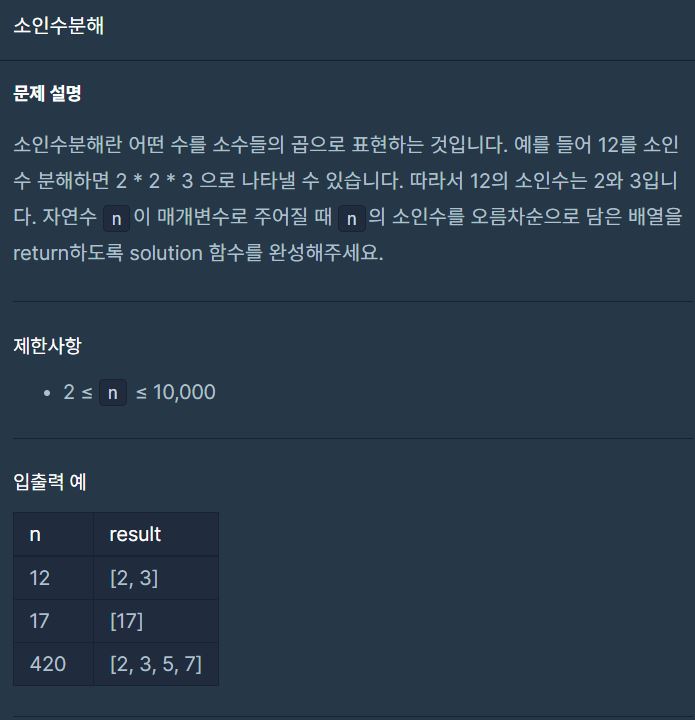 프로그래머스 C# 소인수분해(Distinct, List, while,P,J)