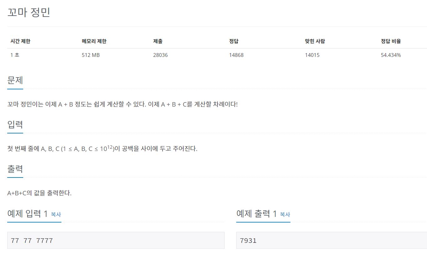 백준 11382번 꼬마 정민 C#(JAVA)