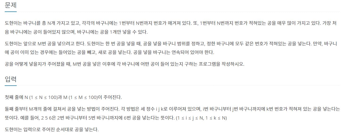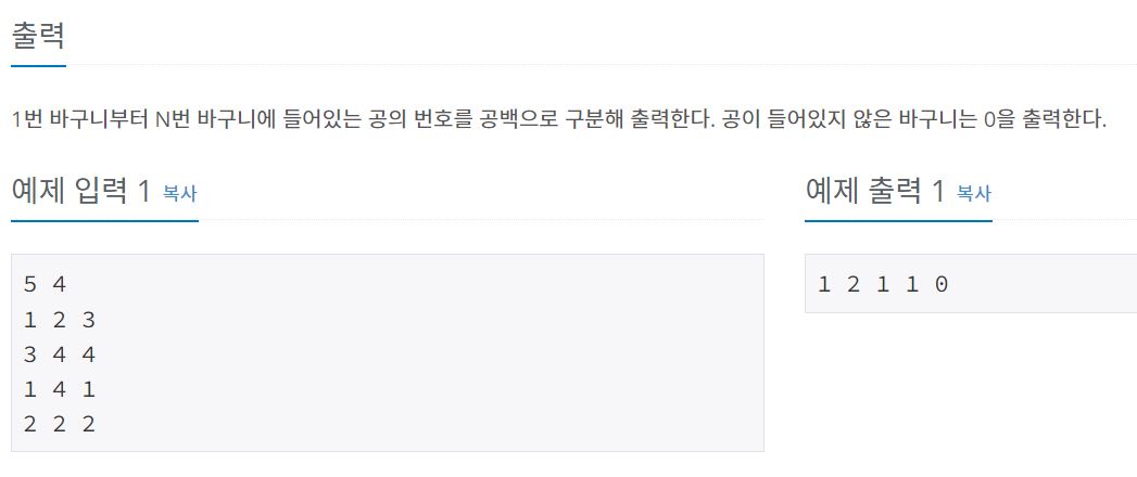 백준 10810번 공 넣기 C#(JAVA)
