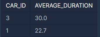 ORDER BY AVERAGE_DURATION DESC, CAR_ID DESC