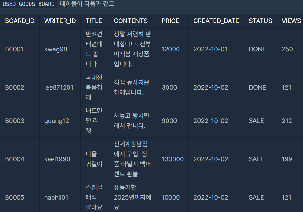 AND VIEWS = (SELECT MAX(VIEWS) FROM USED_GOODS_BOARD)