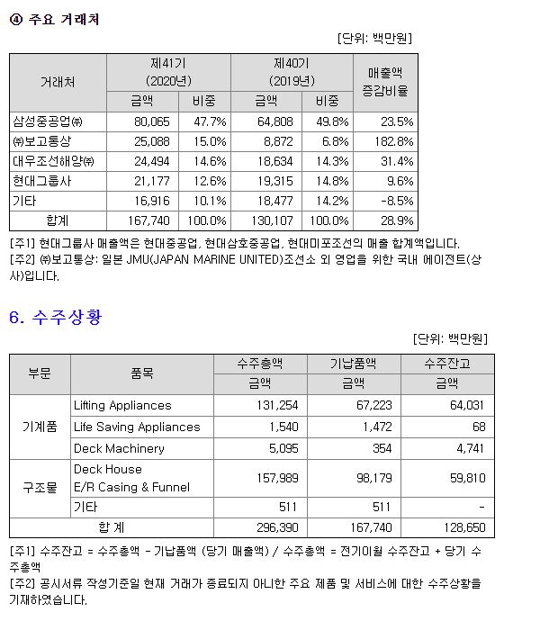 주요 거래처가 삼성중공업으로 비중이 47.7%이다. 보고통상은 일본 조선사에 납품하기 위한 거래처로 보인다. 삼성중공업이 전부는 아니지만, 삼성중공업 비중이 높고, 그렇다고 대우조선해양이나 한국조선해양이 없는 건 아니기에 조선업 전체가 성장할 경우 수혜를 받을 수 있겠다.