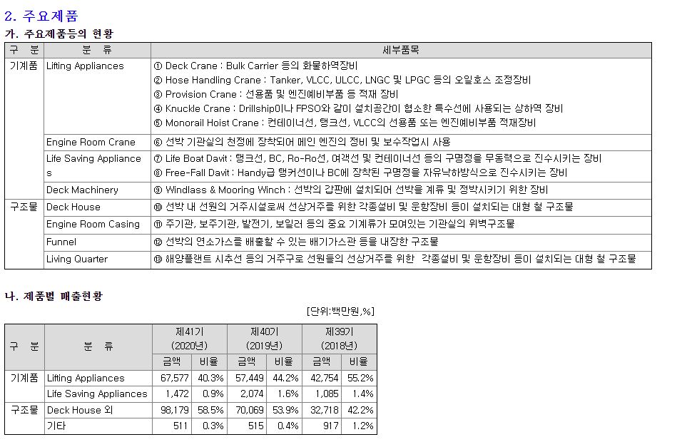 특히 데크 하우스, 기계품 등의 매출액이 대부분이라고 할 수 있다.