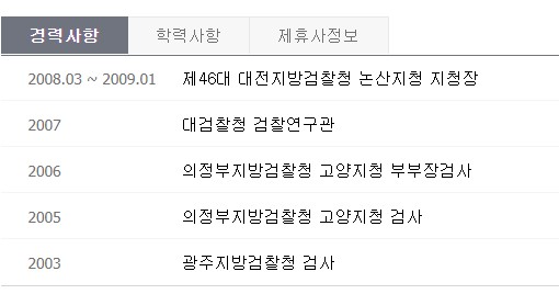 이거는 윤석열 전 총장의 이력인데, 광주지방검찰청의 검사였던 시기가 2003년이라고 한다. 정확히 몇월 몇일부터 부임했는 지는 나와있지는 않다.