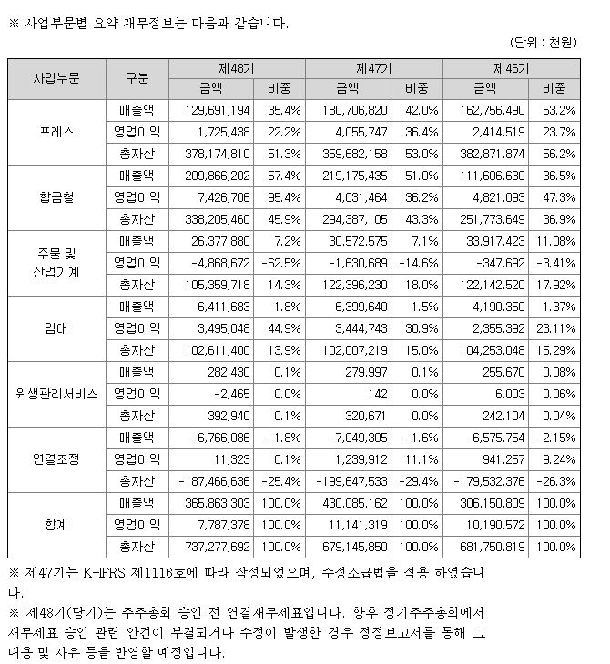 그 다음으로 최근 주가가 오르는 종목이 SIMPAC(심팩)이다. 프레스사업, 합금철사업, Roll사업부가 있다. 합금철 부문이 영업이익이 가장 높은 비중이고 임대에서는 고 영업이익률을 뽑아내고 있다.