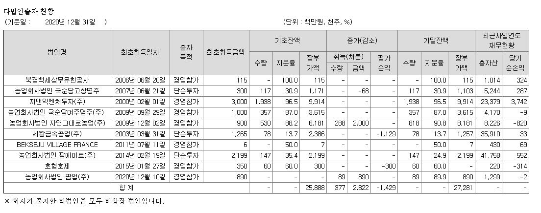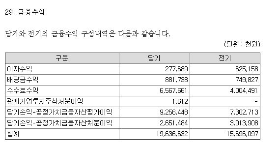 국순당이 은근히 벤처투자를 많이 하는데 몇몇 곳에서 나름 대박이 터졌는지 작년에 실적에도 영향을 준 것으로 보인다. 지앤텍벤처투자가 작년에 당기순손익이 37억원을 기록했던 게 당기순이익에 반영된 것으로 보인다.