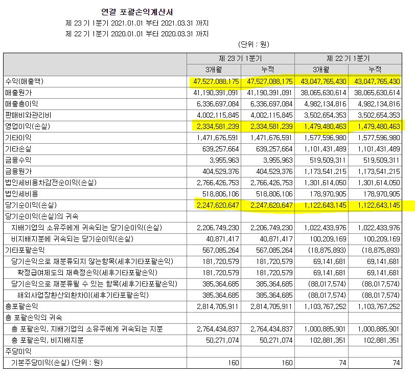 영업이익은 작년 전체 영업이익인 148억원과 비슷한 수준이고, 당기순이익은 이미 작년 당기순이익을 넘어섰다.