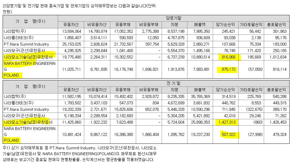 법인별로 실적은 보면, 위에거는 올해 1분기고 밑에거는 작년 전체다. 폴란드 법인은 이미 작년 총 순이익을 넘어섰다. 뭐 앞으로 적자가 날 수도 있기는 한데 1분기만 보면 그럴 가능성은 낮아 보인다.