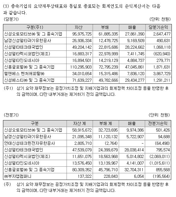 신성오토모티브를 비롯한 자회사는 LG에너지솔루션과 폴란드 지역에 진출해서 배터리 관련 부품을 납품하는 것으로 알려진 회사고, 남경신성델타는 난징의 LG에너지솔루션 배터리 공장과 협업하는 것으로 알려져 있다.